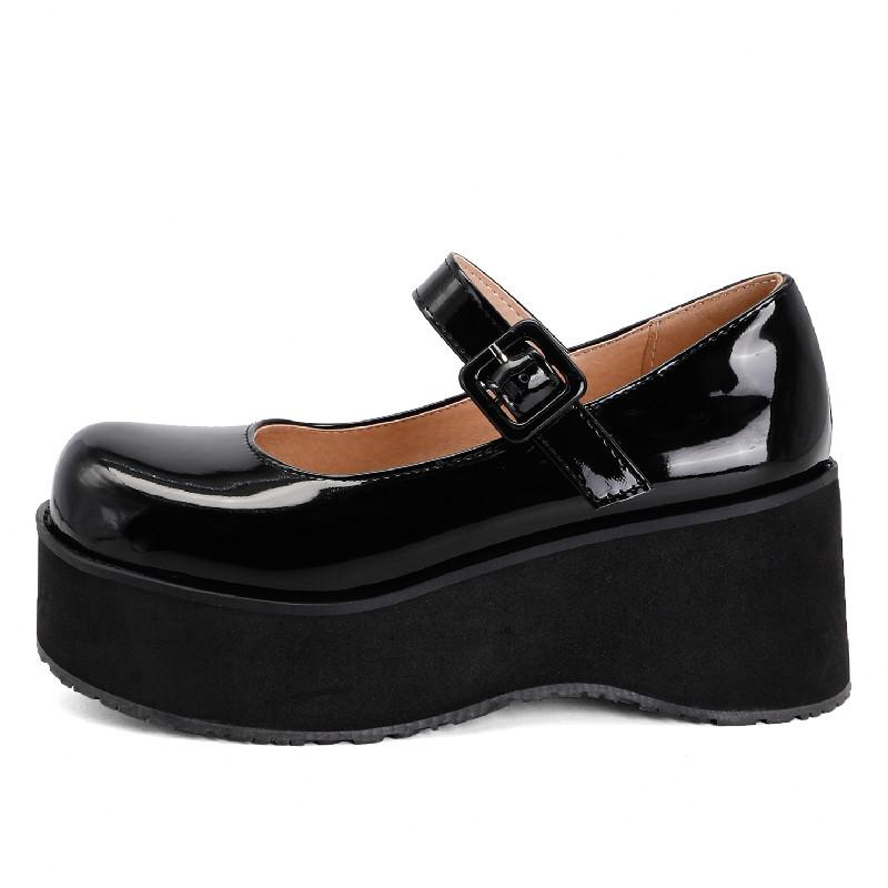 Модные весенние женские туфли на плоской подошве Модные женские туфли на плоской платформе с танкеткой Туфли-лоферы из лакированной кожи Туфли Мэри Джейн для девочек Большие размеры 34 чёрный