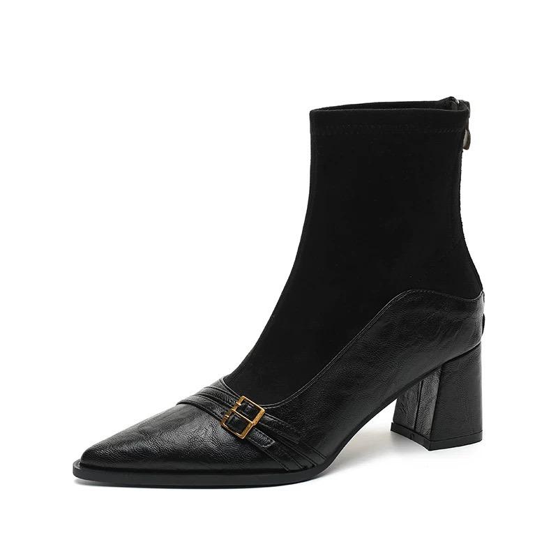 Модные винтажные коричневые ботильоны на блочном каблуке Осень-Зима 2025 Панельные эластичные каблуки Ботинки для женщин 40 чёрный