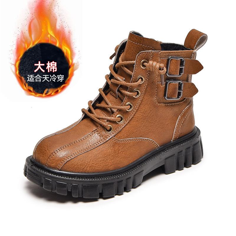 Модные детские ботинки Martin в стиле ретро, осенне-зимние, новые кожаные одинарные ботинки, бархатные, британский стиль, повседневные, нескользящие, короткие ботинки для мальчиков 41 inner length 25cm