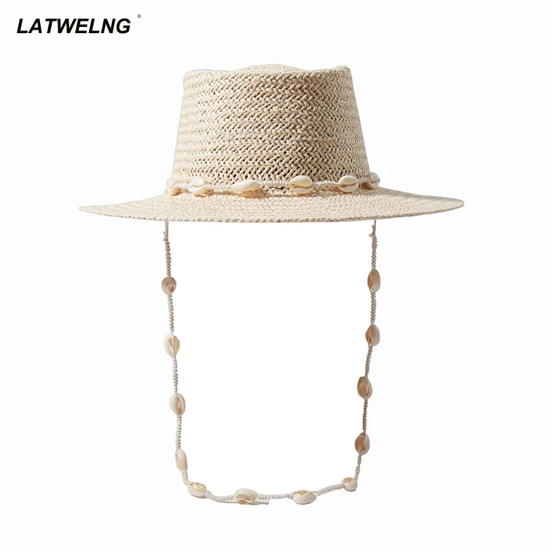 Модные дизайнерские пляжные шляпы из ракушек и цепочек, женские соломенные шляпы с ремешком, женские летние шляпы для защиты от солнца, оптовая продажа