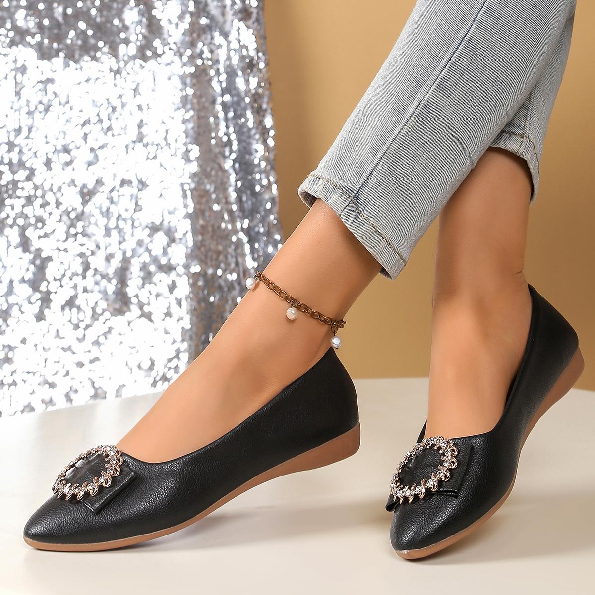 Модные женские балетки больших размеров, повседневные кроссовки для ходьбы, слипоны, высококачественная обувь на плоской подошве, женские уличные лоферы с кристаллами и мягкой подошвой 36 чёрный