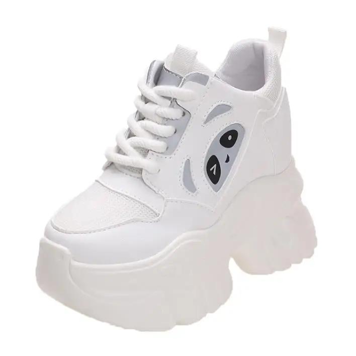 Модные женские ботильоны на платформе, новые осенние, 10 см толстая подошва, повседневные массивные ботинки, дышащая обувь для ходьбы, белые туфли, женские кожаные кроссовки 34 белый