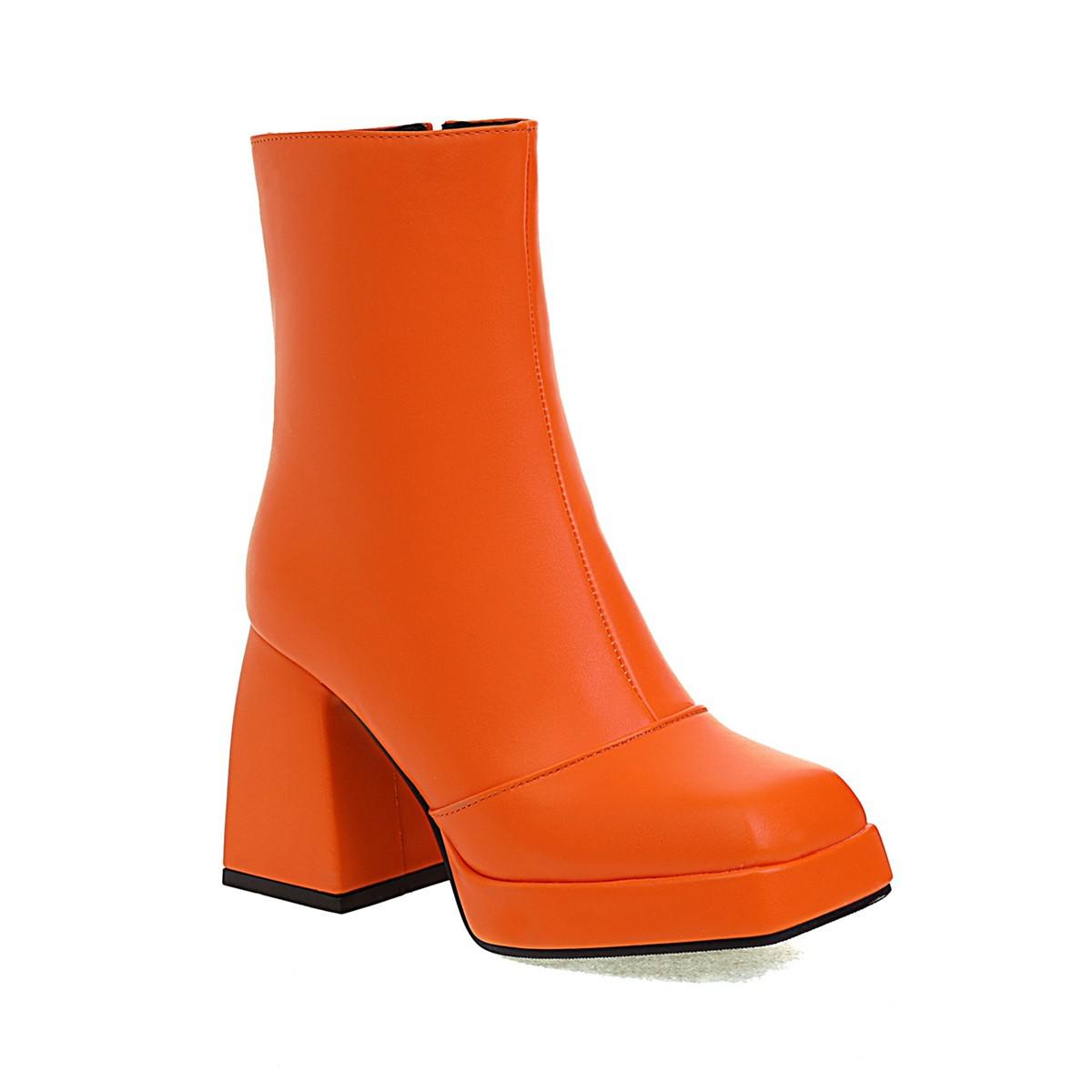 Модные женские ботильоны на платформе, сексуальные, оранжевые, черные, синие, на толстом каблуке, низкие сапоги, осенне-зимние, женские туфли для вечеринок, большой размер 42, 43 8.5