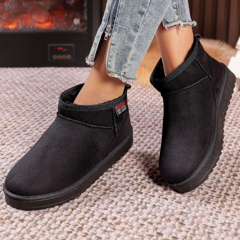 Модные женские зимние сапоги на твердой платформе из искусственной замши, осенне-зимние теплые туфли-лодочки большого размера 44, хлопковые туфли без застежек 44 чёрный