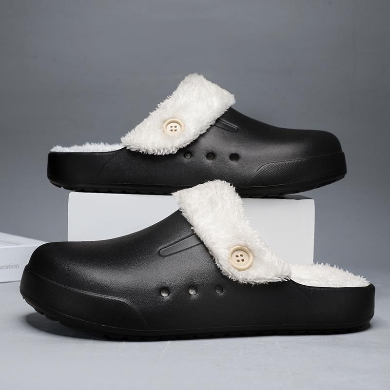 Модные женские зимние теплые тапочки больших размеров 46 47, мужские хлопковые туфли, уличные и домашние теплые туфли, парные домашние тапочки для спальни, плюшевые теплые тапочки 46-47 чёрный