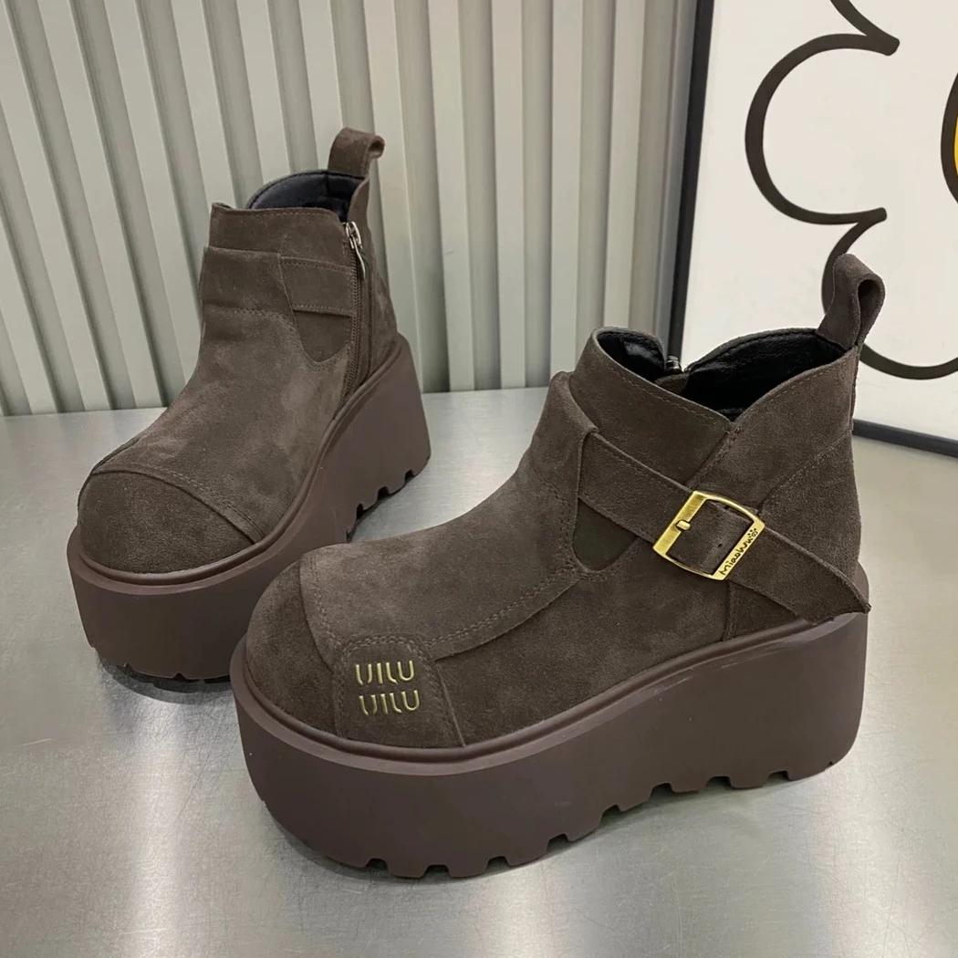 Модные женские леопардовые ботильоны на платформе с леопардовым принтом, зимние ботинки на плоской подошве, замшевые плюшевые туфли, женская зимняя тенденция 2025 года, удобные, теплые, нескользящие ботинки Mujer 37