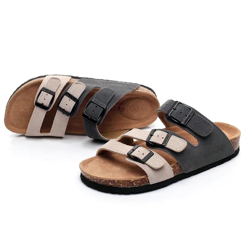 Модные женские летние тапочки из воловьей кожи, модные пляжные сандалии из пробки, парные тапочки, сандалии, повседневные шлепанцы, туфли на плоской подошве 5