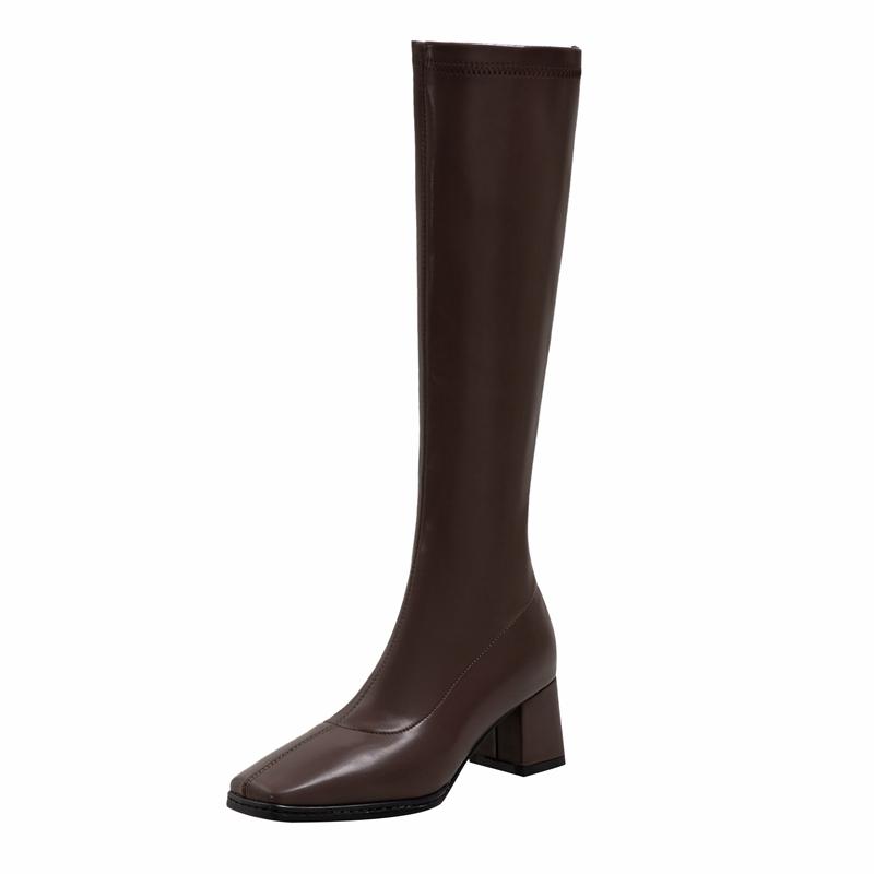 Модные женские новые осенне-зимние туфли на высоком каблуке с квадратным носком и молнией на колене, плюс большие сапоги-рыцари с широким голенищем, мотоциклетные сапоги и сапоги для верховой езды 265 коричневый