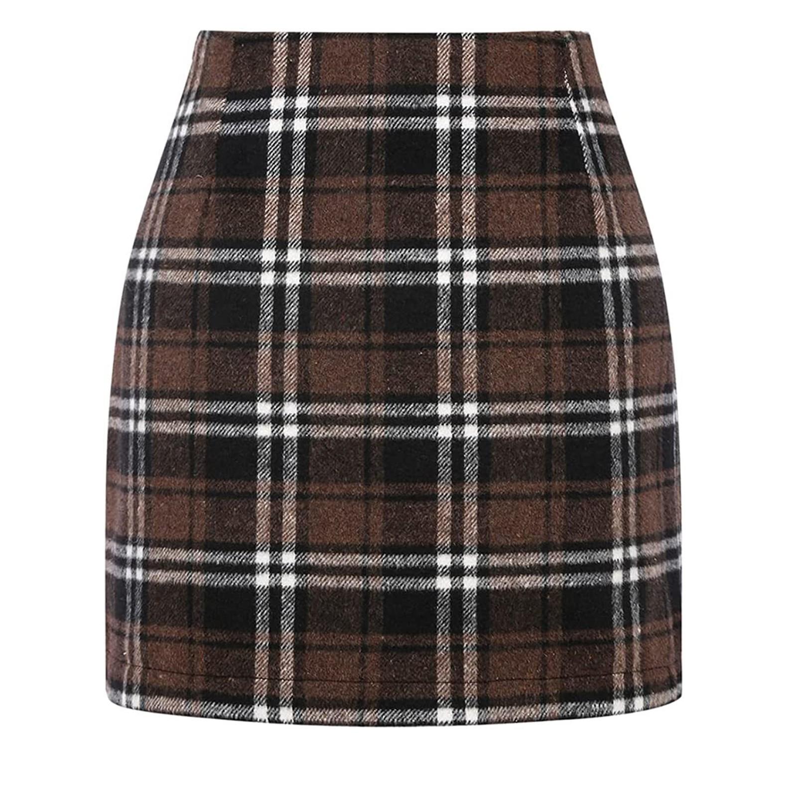 Модные женские осенние и зимние клетчатые сексуальные вечерние разделенные однотонные юбки с завитками M светло-коричневого