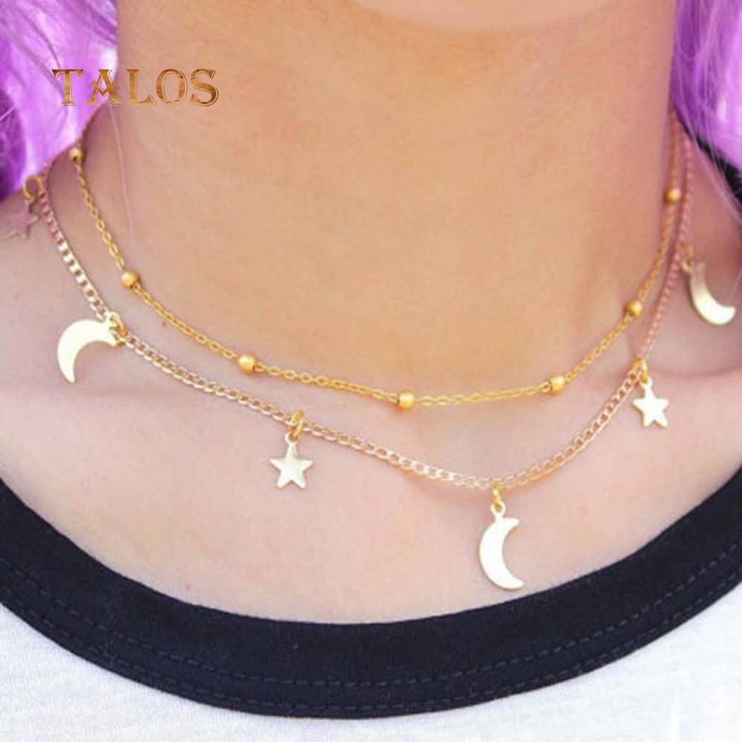 Модные женские очаровательные ювелирные изделия, многослойная подвеска в виде лунных звезд, колье, ожерелье, подвеска, брелок