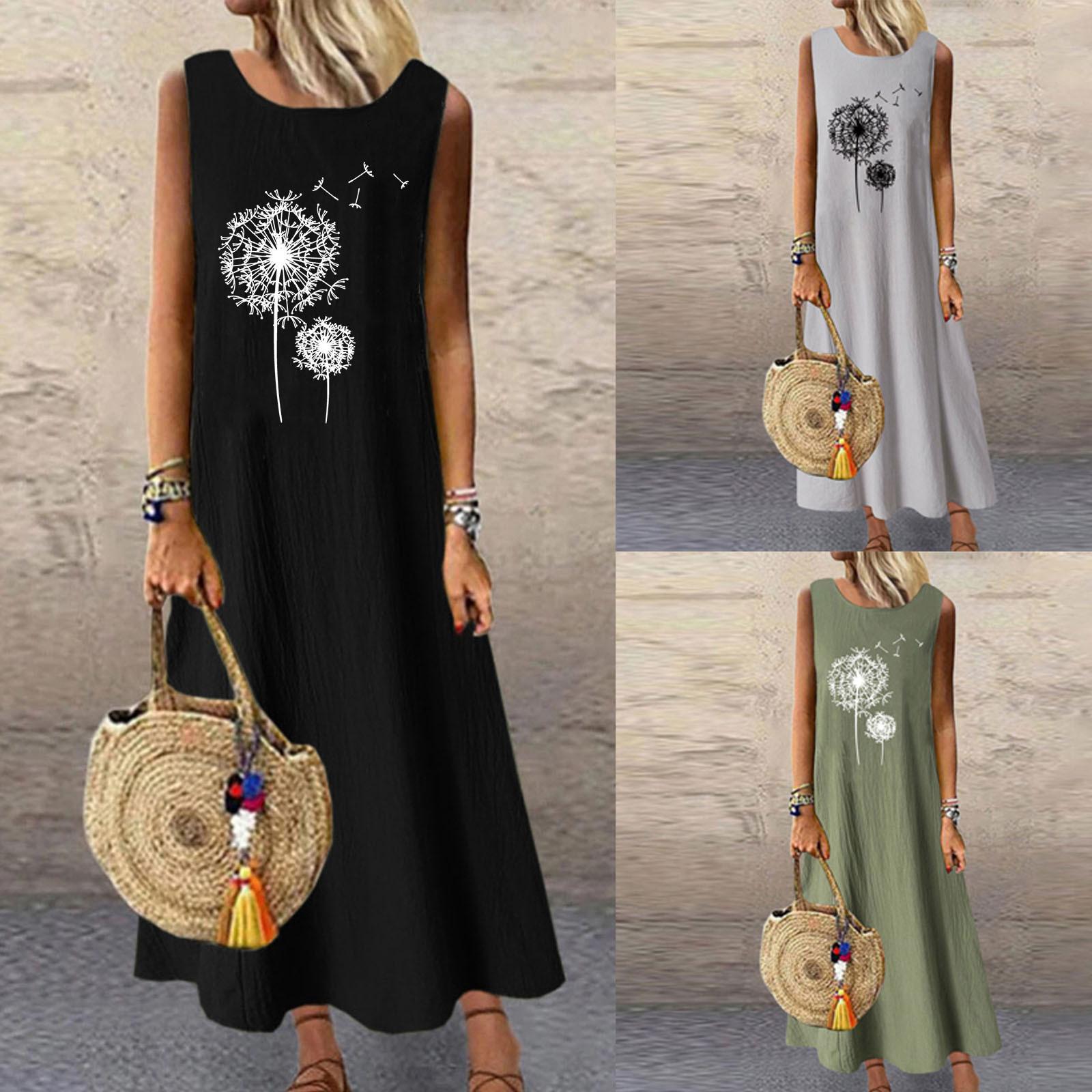 Модные женские платья Летнее повседневное пляжное длинное платье без рукавов с круглым вырезом и карманами для отпуска L армия зеленый