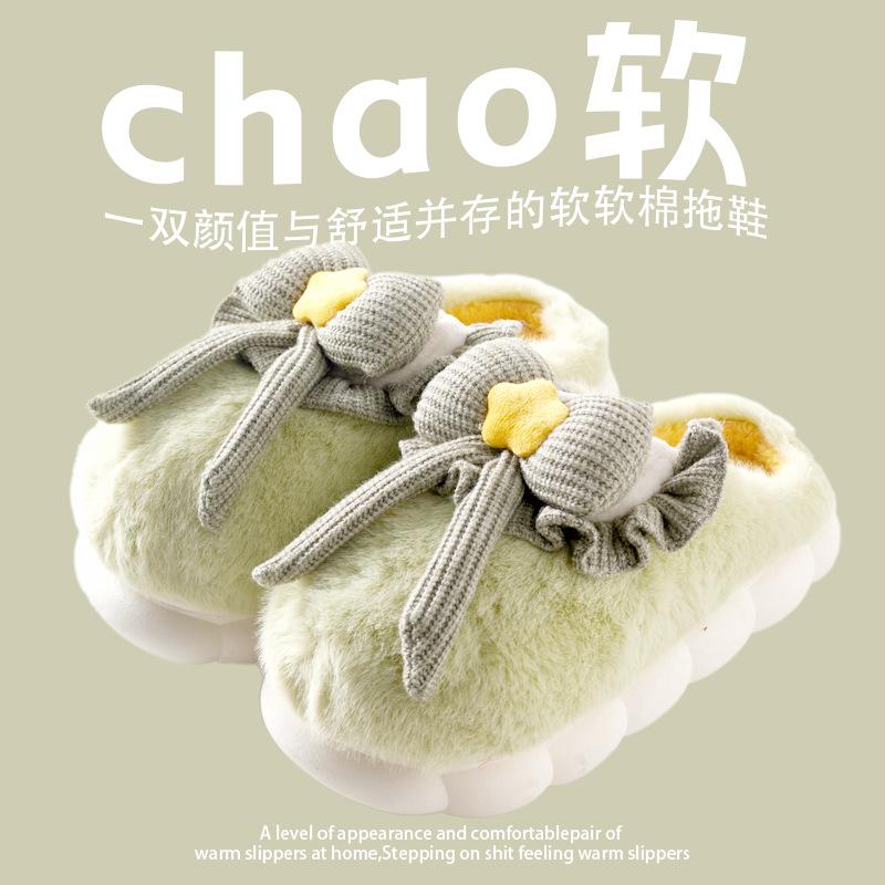 Модные женские плюшевые тапочки Зимние теплые мультяшные тапочки с бантом Закрытый носок Нескользящие пушистые домашние тапочки Женские тапочки для дома для спальни 40-41 зелёный