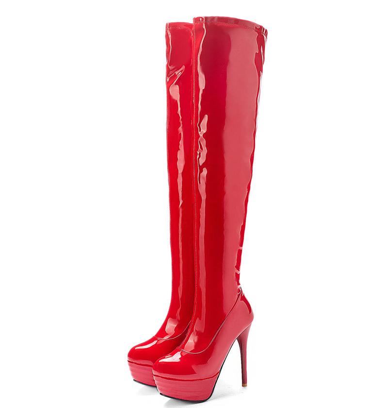 Модные женские сапоги выше колена, сексуальные сапоги на платформе и высоком каблуке, длинные сапоги, черные, красные, белые, для ночного клуба, вечеринки, фетиш-обувь, женские, большого размера 44 красный