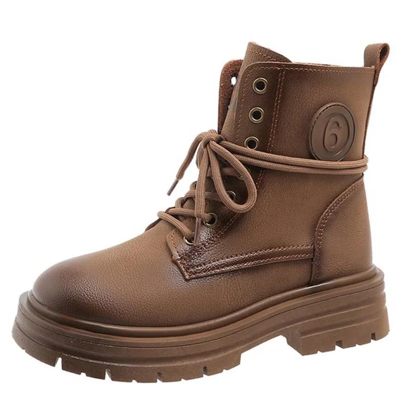 Модные женские сапоги SyfIyno осень-зима ретро-мода на платформе, дизайнерские роскошные кожаные туфли, женские повседневные однотонные мотоциклетные туфли 37