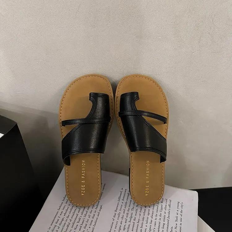 Модные женские тапочки на открытом воздухе с металлической цепочкой на плоской подошве 2024 года, женские шлепанцы, новинка лета, повседневные шлепанцы, пляжная женская обувь для тапочек 35 чёрный
