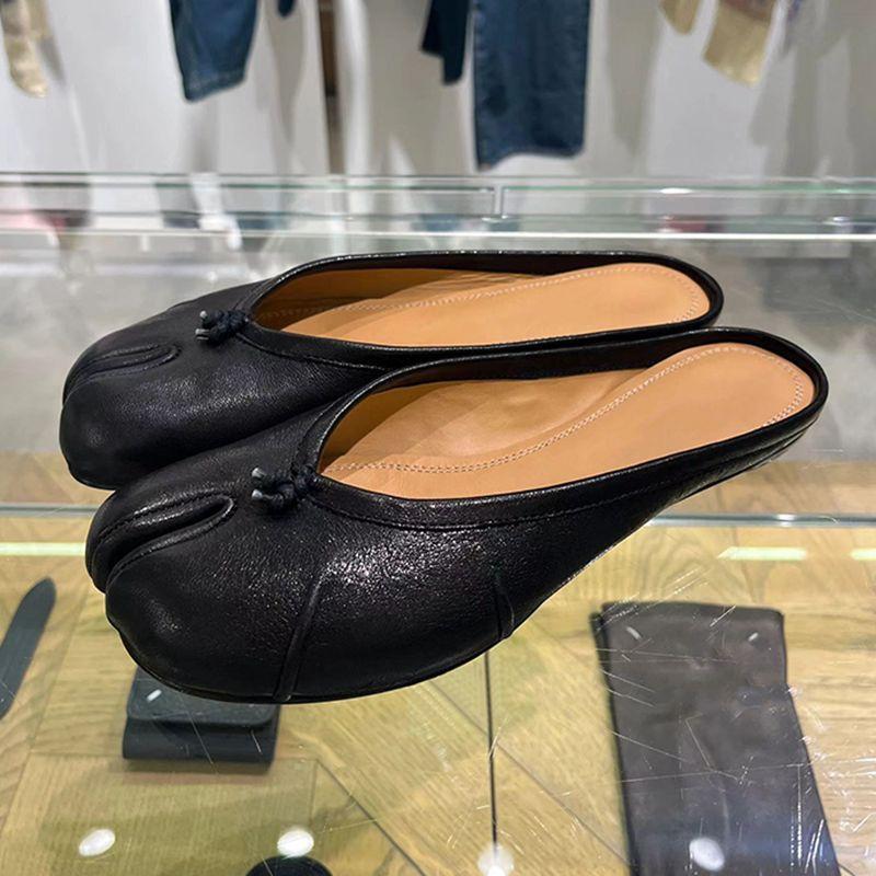 Модные женские тапочки с раздельным пальцем таби ниндзя слипоны балетки с круглым носком женские мелкие ленивые слипоны лодочки с ремешком на пятке мюли обувь мягкие лоферы 35 чёрный