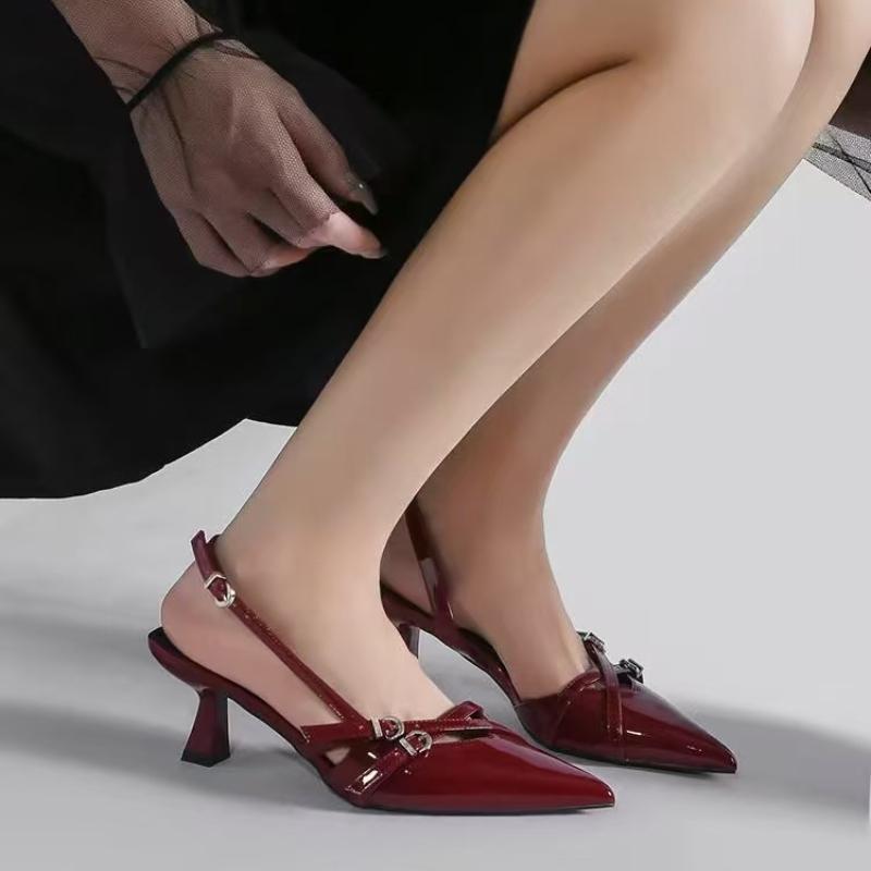 Модные женские туфли-лодочки на высоком каблуке 2025 лето новая коллекция сандалии на тонком каблуке для вечеринки женская обувь ремешок с пряжкой сандалии на тонком каблуке 41