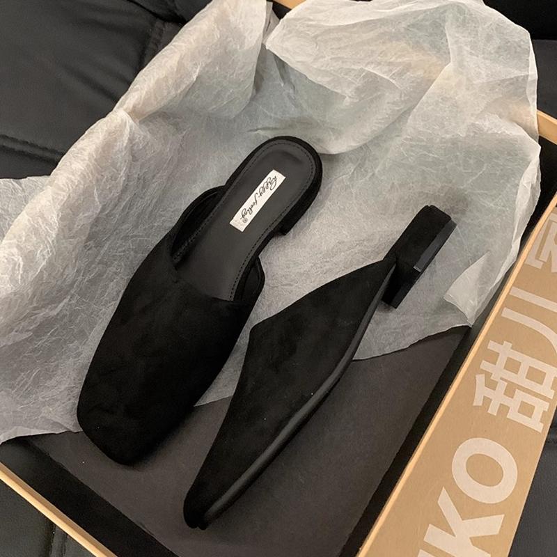 Модные женские туфли SUOJIALUN 2024 Осень, балетки, модные туфли-мюли слипоны с круглым носком, мягкий плоский каблук, уличные повседневные туфли-сандалии для платья 40 чёрный
