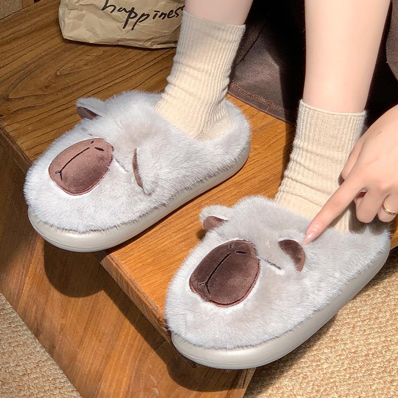Модные женские хлопковые тапочки с капибарой, мультяшные парные нескользящие теплые домашние тапочки для помещений, плюшевые пушистые зимние удобные тапочки для пола 44-45 серый