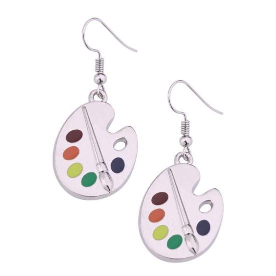 Модные женские эмалевые серьги-подвески с крючками в виде палитры и кисти для рисования, ювелирные изделия, рождественский подарок