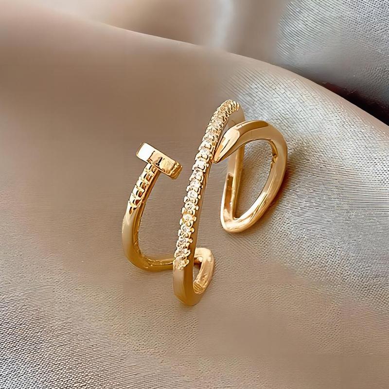 Модные кольца из меди и циркония с регулируемым размером для женщин, модные металлические кольца золотого цвета с кристаллами, кольцо с открытием в виде булавки для вечеринок и на каждый день, цирконий