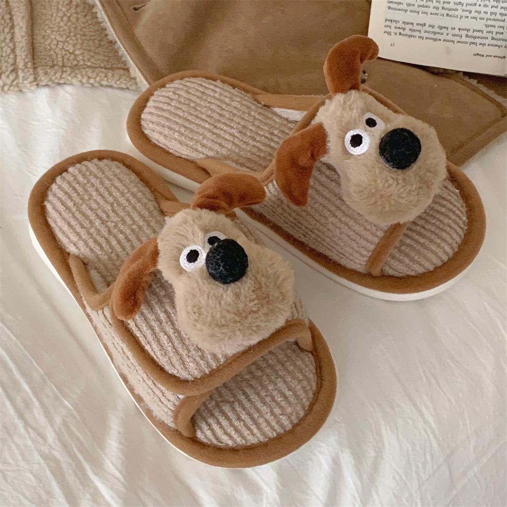 Модные корейские плюшевые теплые домашние хлопковые тапочки Осень и Зима Плюшевые тапочки с собакой Креативные тапочки на липучке Женские 40-41 хаки