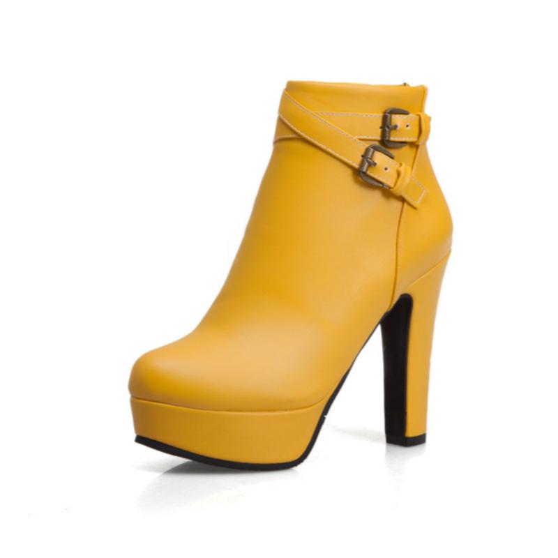 Модные короткие ботинки, женская обувь, осень-зима, сексуальные ботильоны на платформе для женщин, черные, красные, желтые, белые, женские туфли, большой размер 39 жёлтый