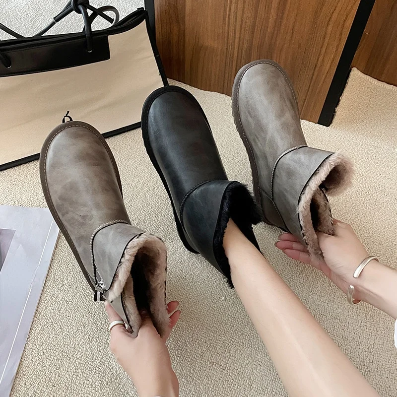 Модные короткие сапоги из хлопка, новинка осень-зима 2022, стильные женские бархатные сапоги для снега в Корейском стиле, теплая хлопковая обу...
