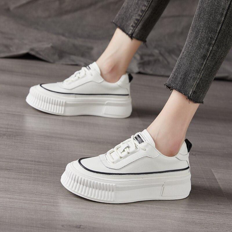 Модные кроссовки, женская обувь, белая кожаная кружевная новая осенняя дизайнерская обувь высокого качества на вулканизированной платформе