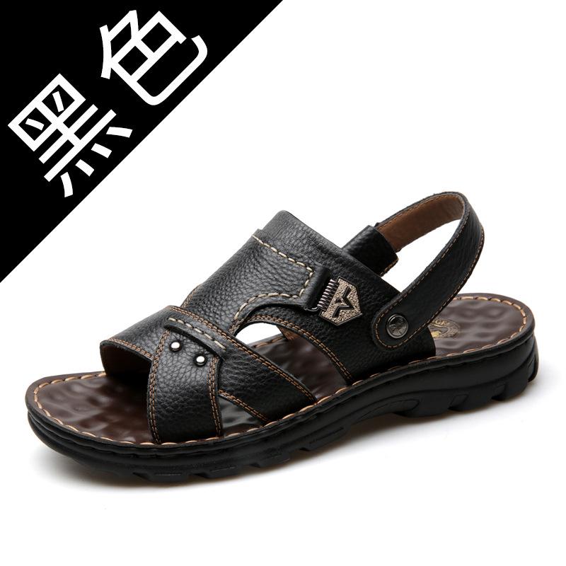 Модные летние мужские сандалии большого размера, британская мода, натуральная кожа, пляжная обувь, мужские повседневные массажные нескользящие большие тапочки на плоской подошве 6.5 чёрный