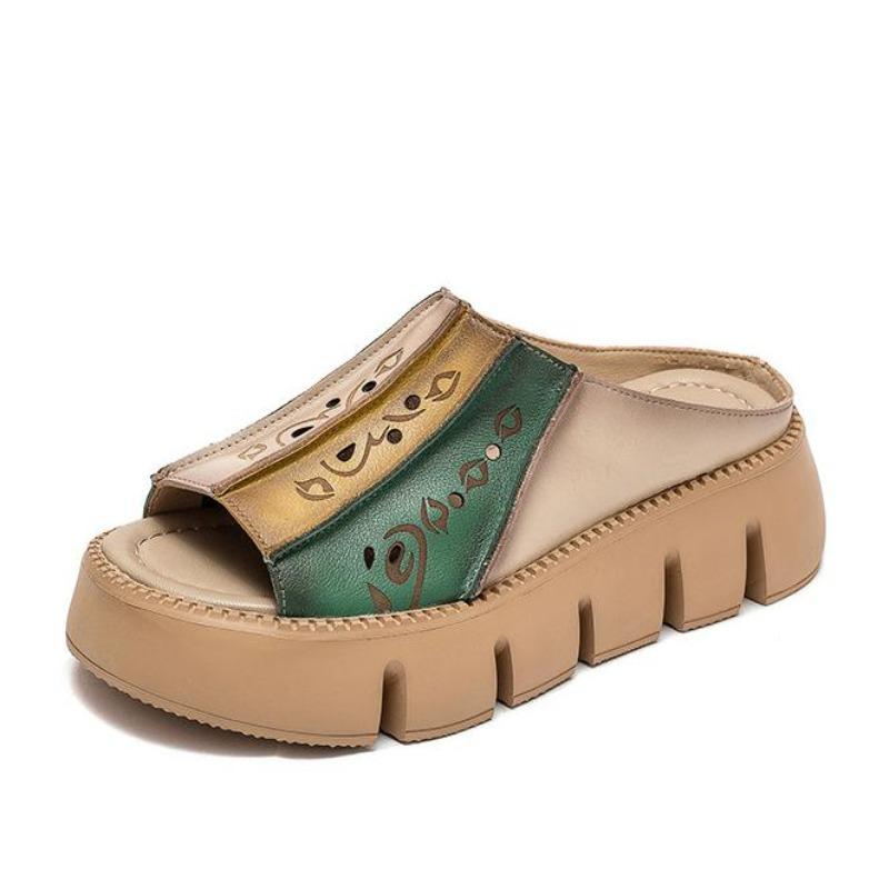 Модные летние туфли из натуральной кожи, женские шлепанцы на танкетке, уличные шлепанцы для отдыха, 2025, новые, ручной работы, лаконичные женские шлепанцы 40 зелёный