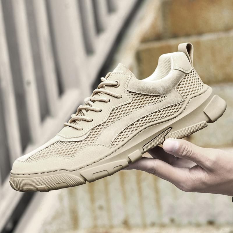 Модные летние хиты продаж, новые мужские кожаные туфли, спортивная обувь для мальчиков, повседневная сетчатая обувь, дышащие мокасины, удобные уличные нескользящие кроссовки 45
