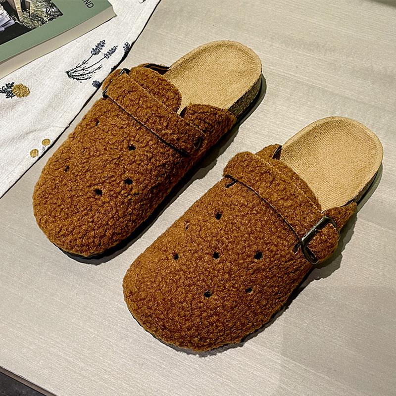 Модные меховые балетки женские тапочки с ремешком через пятку короткие плюшевые мюли обувь модная новая уютная женская обувь 2025 осень повседневная для платья Chaussure Femme 41 темно-коричневого
