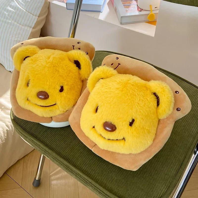 Модные милые мультяшные пушистые тапочки женские зимние мягкие плюшевые на толстой подошве домашние противоскользящие универсальные трендовые женские хлопковые тапочки 40-41 жёлтый