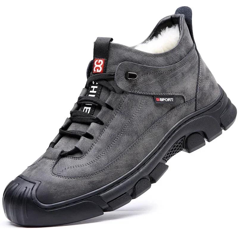 Модные мужские ботинки из натуральной кожи, шерстяные зимние ботинки, уличная нескользящая обувь для пешего туризма, кроссовки для мужчин, зимняя плюшевая теплая хлопковая обувь, ботинки 43 серый