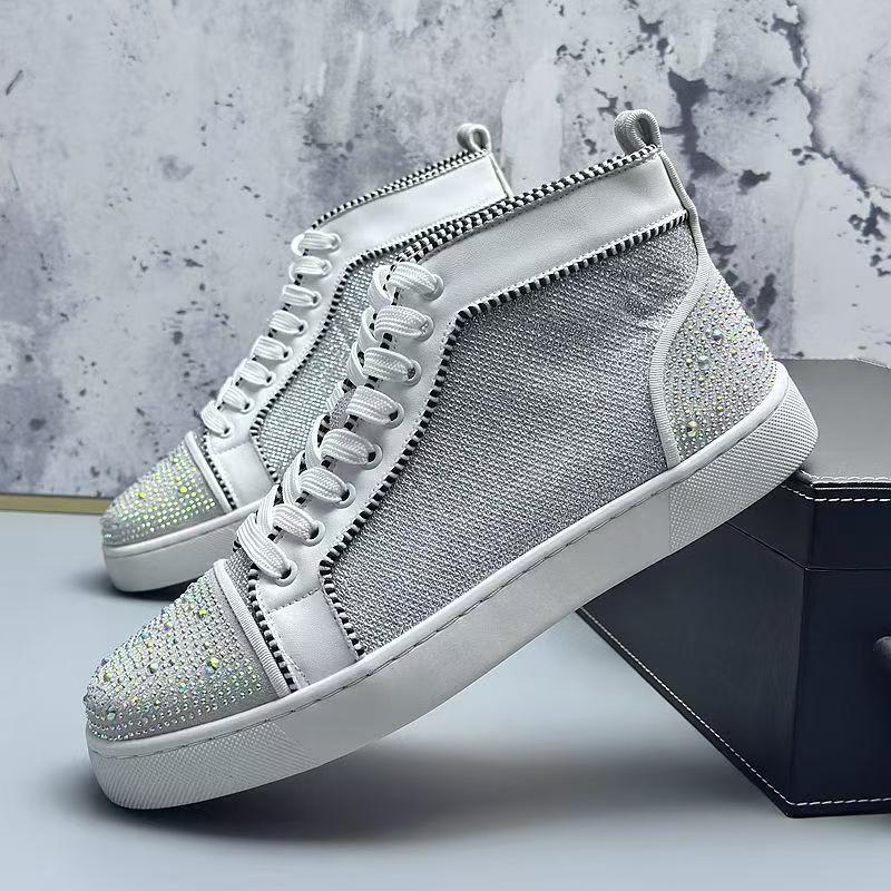 Модные мужские повседневные дышащие ботильоны черные белые туфли со стразами для вечеринок, ночных клубов, платья на плоской подошве, ботинки на платформе, крутые короткие ботинки hombre 9