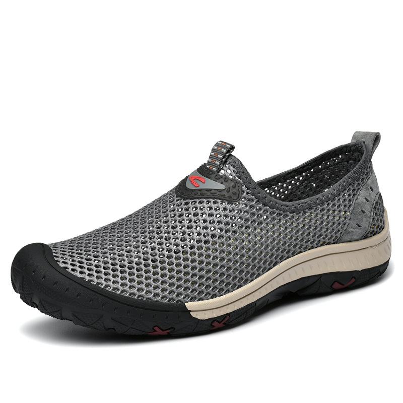 Модные мужские сандалии с открытым носком, модная повседневная обувь, дышащие мужские пляжные туфли, спортивные туфли на плоской подошве, новые летние мокасины, сетчатая обувь для прогулок 48 серый