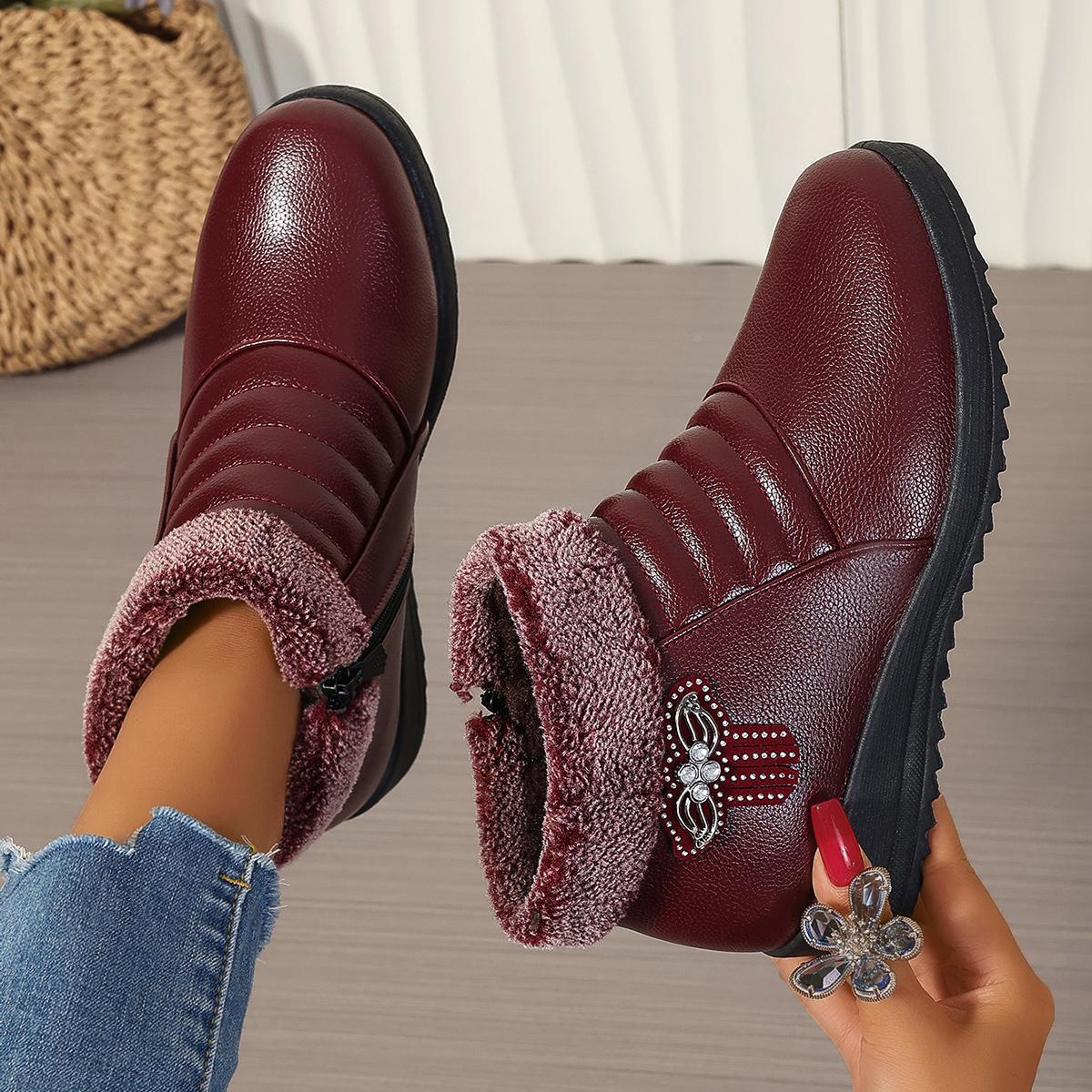 Модные новые зимние женские ботинки, толстые плюшевые ботильоны, женские ботинки на молнии, удобные уличные зимние ботинки, модная хлопковая обувь, Botas De Mujer 41 вино красного