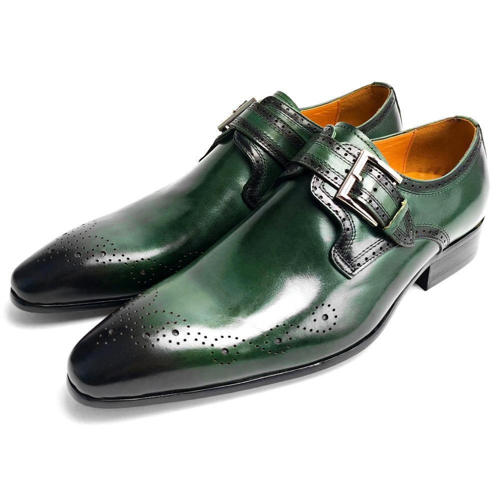 Модные новые мужские броги кожаные туфли Металлическая пряжка Регулируемые лоферы Мужские более высокого качества Модные социальные молодежные туфли для вечеринок Формальные туфли 50 зелёный