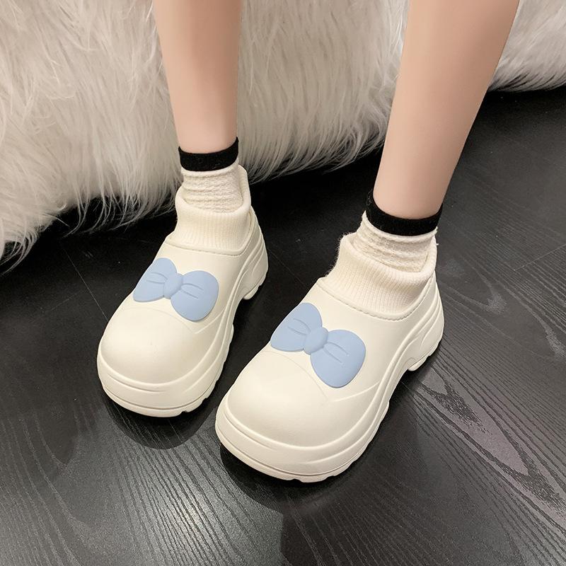 Модные осенние и зимние женские водонепроницаемые резиновые сапоги с хлопком для сохранения тепла и милым мультяшным бантом, сверхлегкие водонепроницаемые резиновые сапоги 40-41