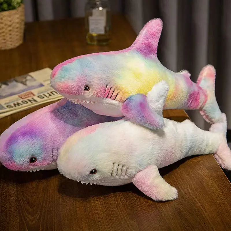 15/45/60cm Colorful Rainbow Shark Doll Plush Toy Fuzzy Long Plush Ocean Animal Plushie Sleeping Companion Birthday Gift Kids