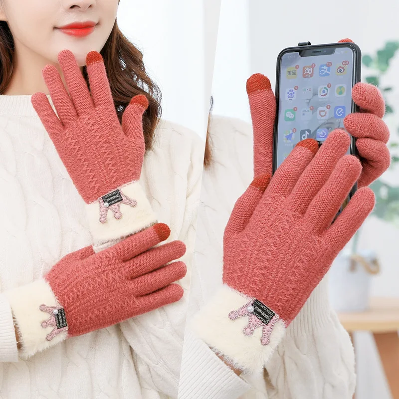 Модные перчатки MYALICE с узором в виде короны, зимние теплые перчатки с разрезом для рук, кашемировые удобные вязаные бархатные плотные перчат...