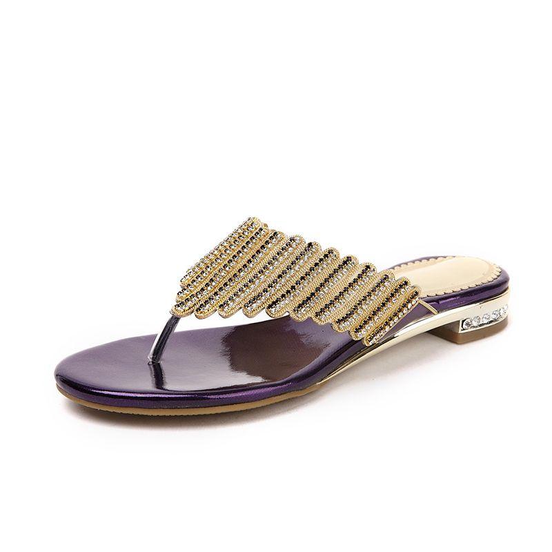 Модные пляжные мягкие сандалии, женские новые летние шлепанцы, женские тапочки с ромбовидным узором, симпатичные нескользящие туфли в стиле бохо 34(Foot 22cm) фиолетовый