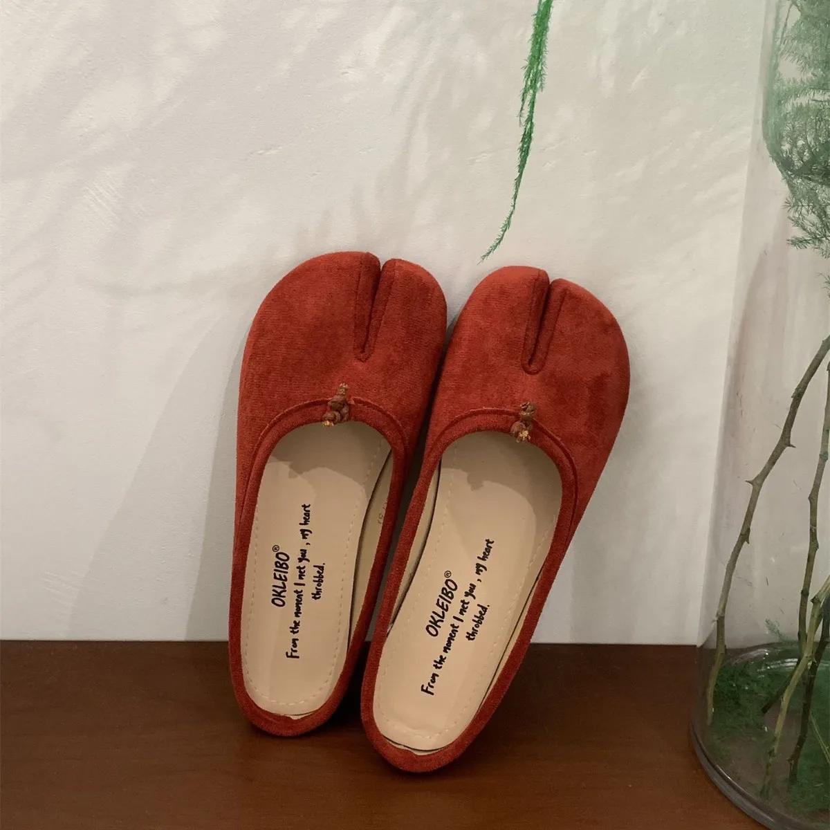 Модные ретро туфли с раздельным носком для женщин, замшевые туфли на каблуке «копытце», полушлепанцы с закрытым носком на мягкой подошве 39 красный