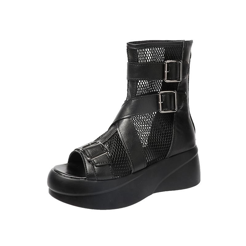 Модные сандалии на платформе Весна Новые Круглый носок Открытый носок Сетчатые Дышащие Металлическая пряжка Застежка-молния сзади Противоскользящие Износостойкие Ботильоны 39