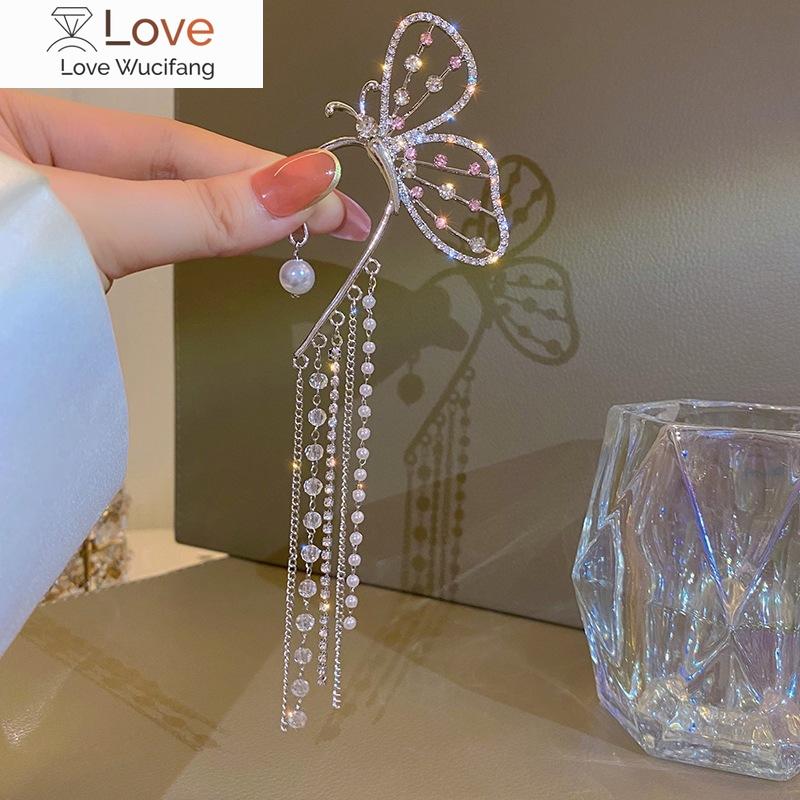 Модные серьги-клипсы с кристаллами-бабочками, жемчужные бусины, манжеты для ушей, длинные кисточки, очаровательные полые серьги для женщин, ювелирные изделия на зажимах, подарки