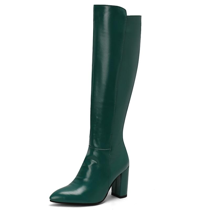 Модные синие женские зимние высокие сапоги на молнии, черные, белые, красные, до колена, женские туфли, ковбойские длинные туфли, большой размер 48 39 зелёный