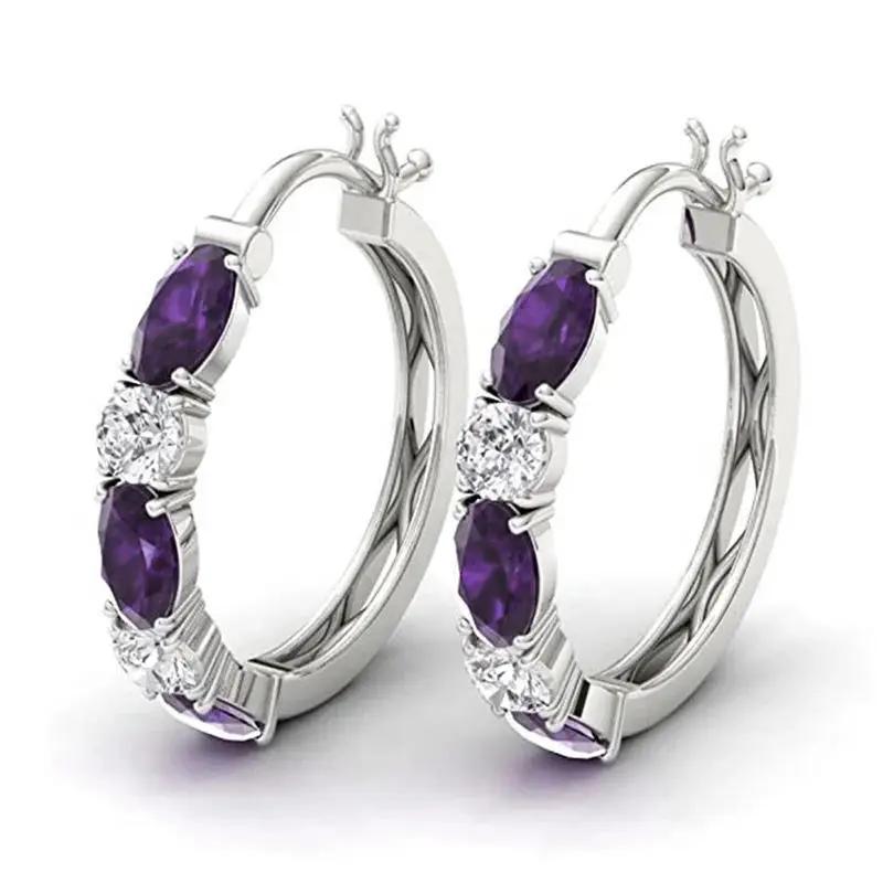 Модные синие серьги-кольца с кубическим цирконием, элегантные аксессуары для свадебной вечеринки, женские ювелирные изделия в подарок на день рождения E2406