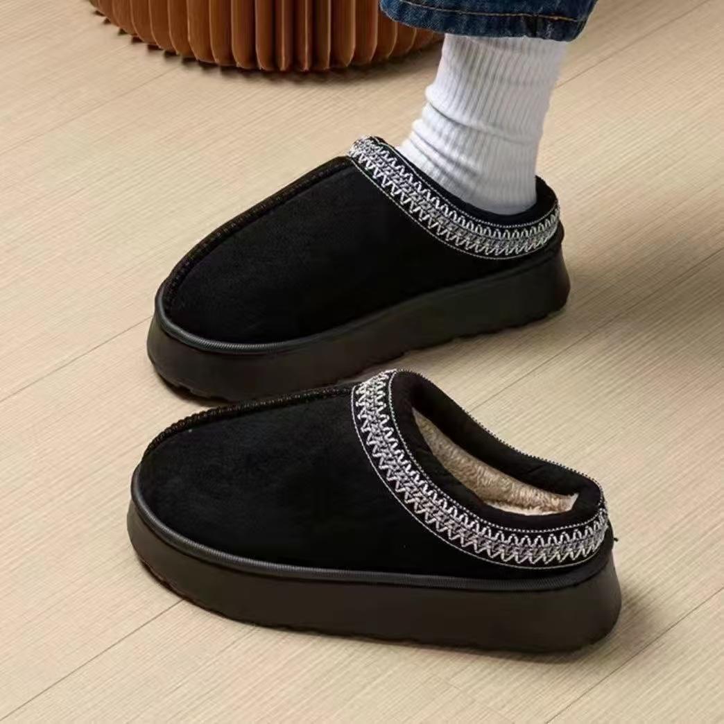 Модные тапочки на платформе, пушистые, женские/мужские, домашние, балетки, модная плюшевая зимняя обувь, женская, домашняя, элегантная, повседневная обувь, большой размер 40-41 чёрный