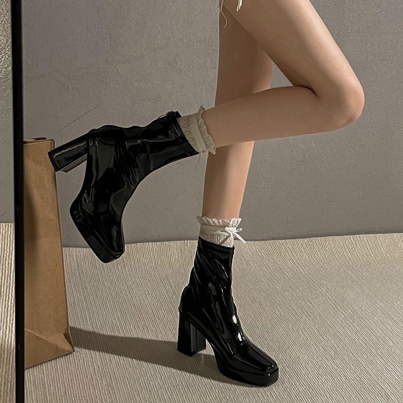 Модные темпераментные ботильоны на высокой платформе и высоком каблуке, женская мода, круглый носок, задняя молния, лакированная кожа, укороченные ботинки 40 чёрный